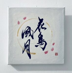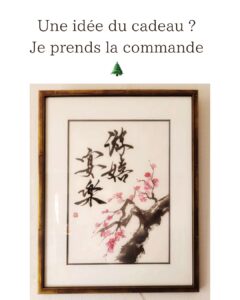 Gallerie Calligraphie sur canva / panneau33-38 € Calligraphie traditionnelleA4 / format traditionnel simple30-40 € Calligraphie avec passe-partout Calligraphie dorée10 € Carte postaleSumi-nagashi Commande sur mesure