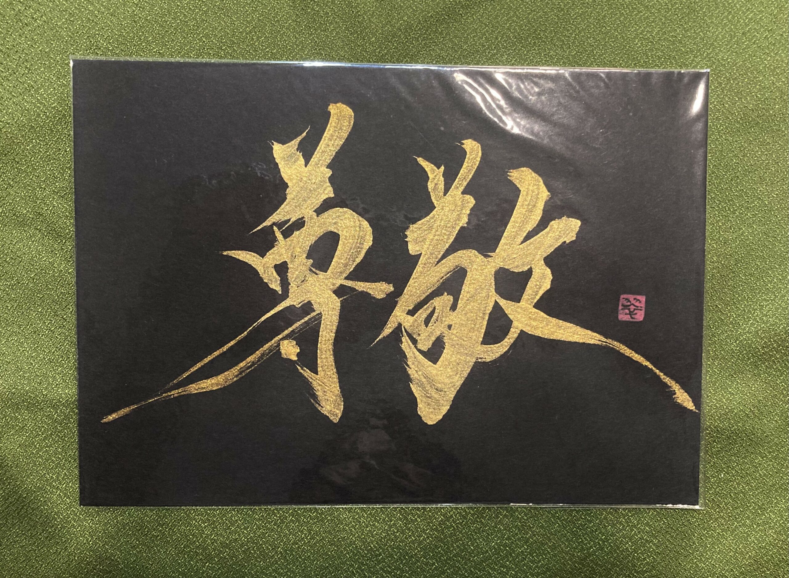尊敬 sonkei, Respect – calligraphie dorée sur fond noir, format A5