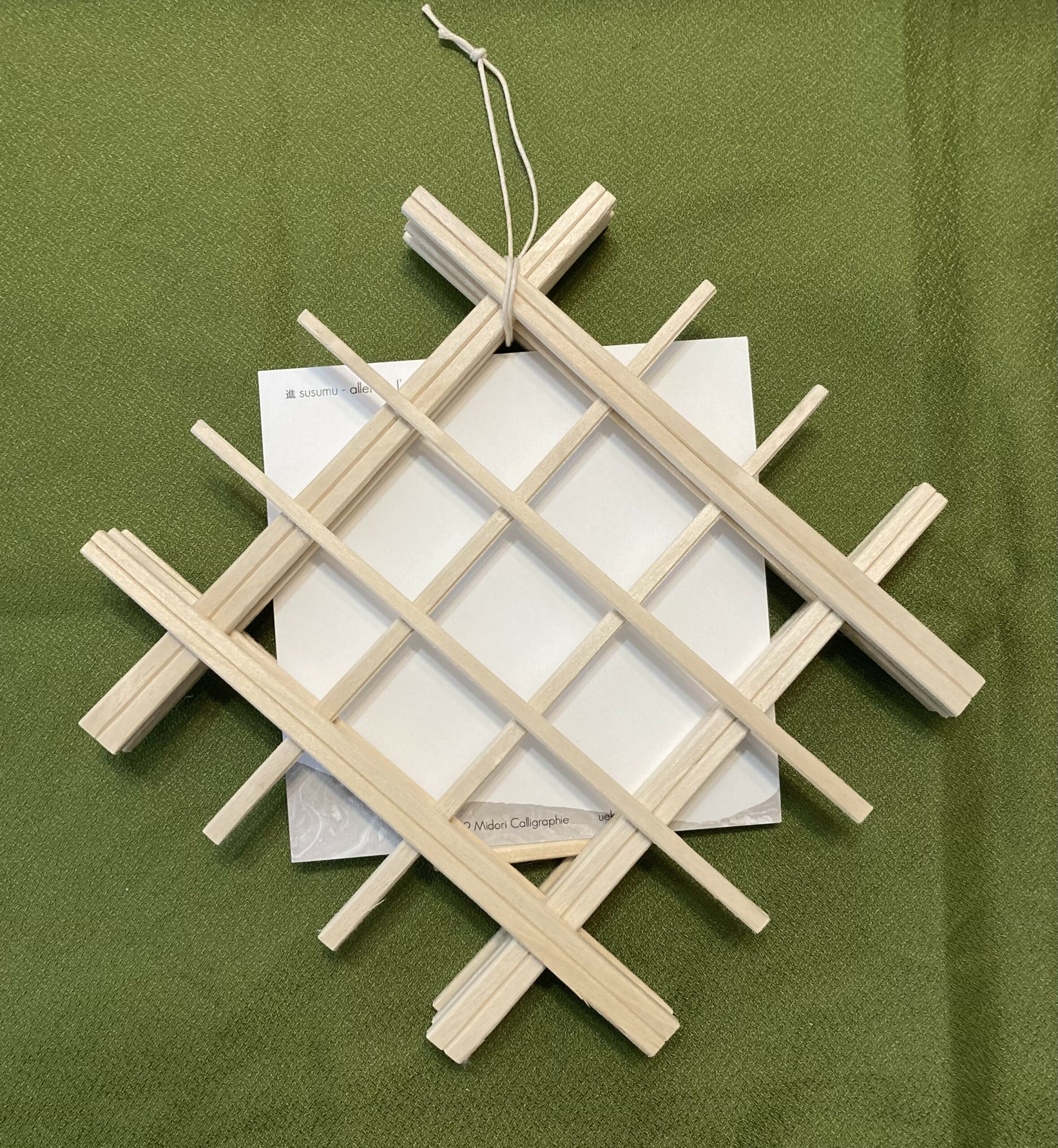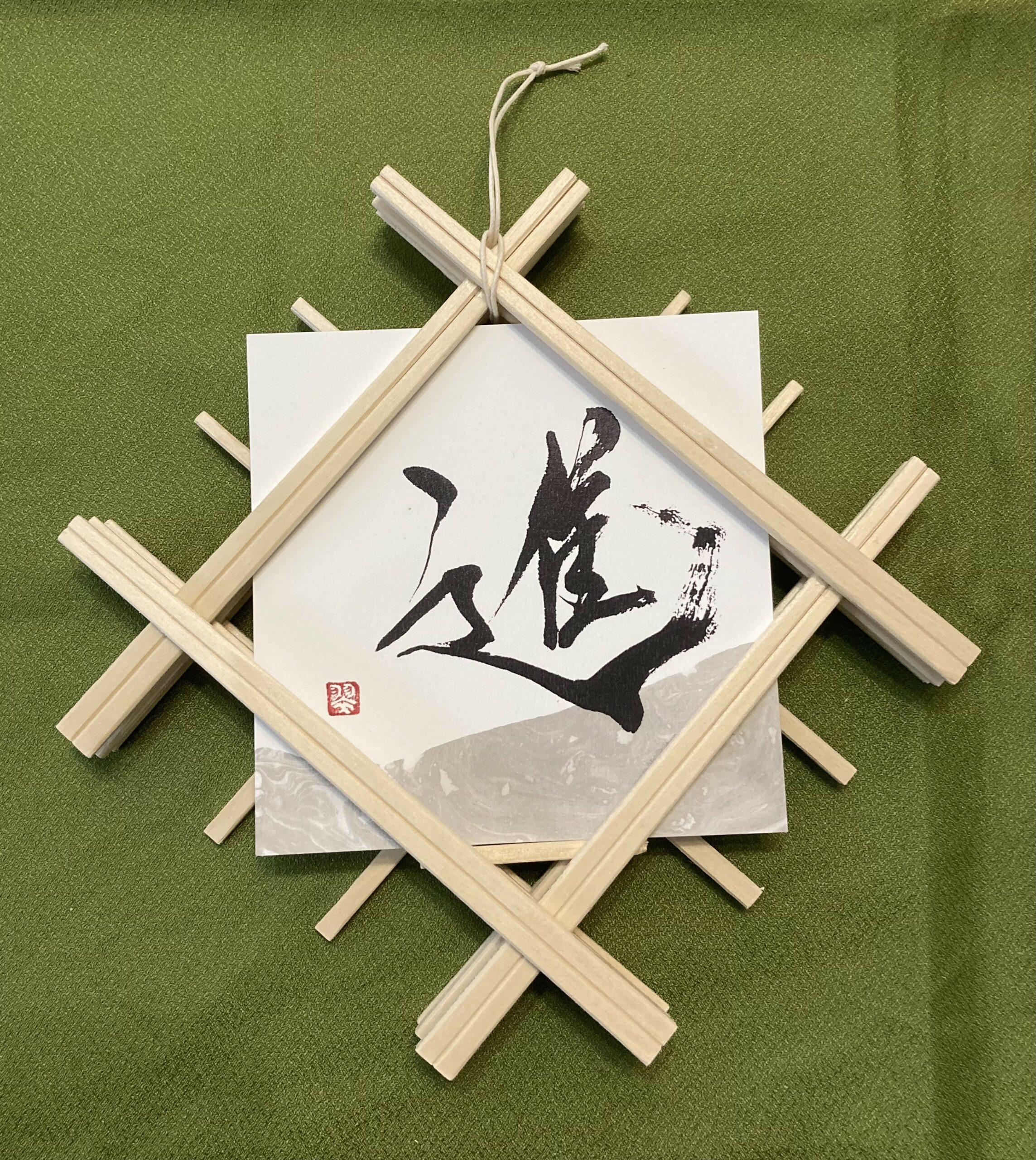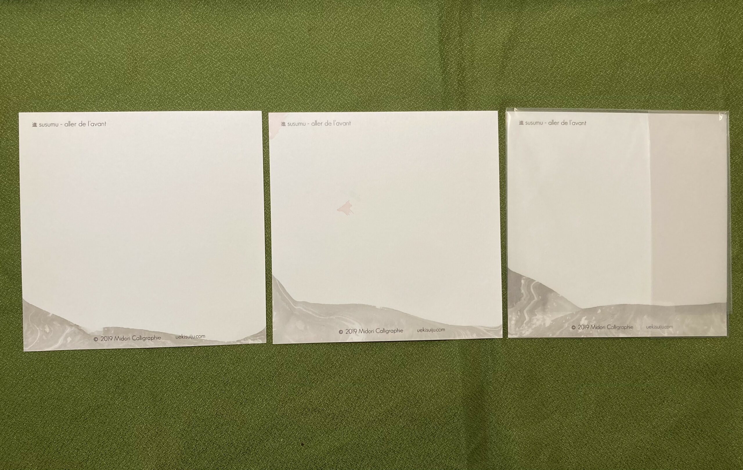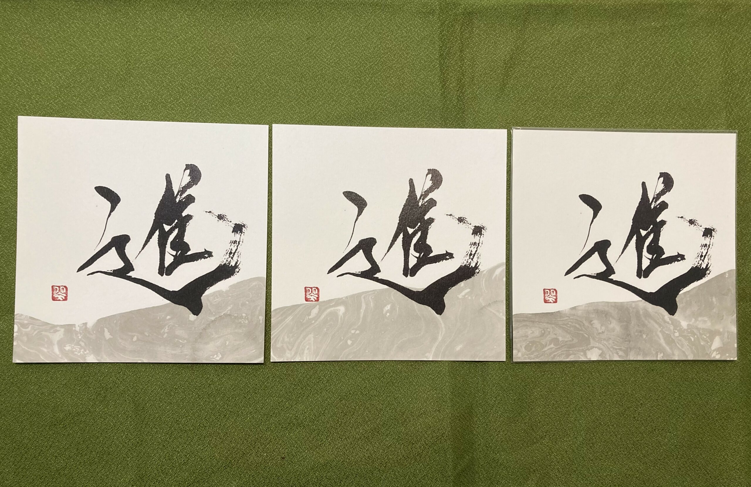 進 susumu, aller de l’avant – carte postale 14×14 avec calligraphie imprimée et suminagashi original