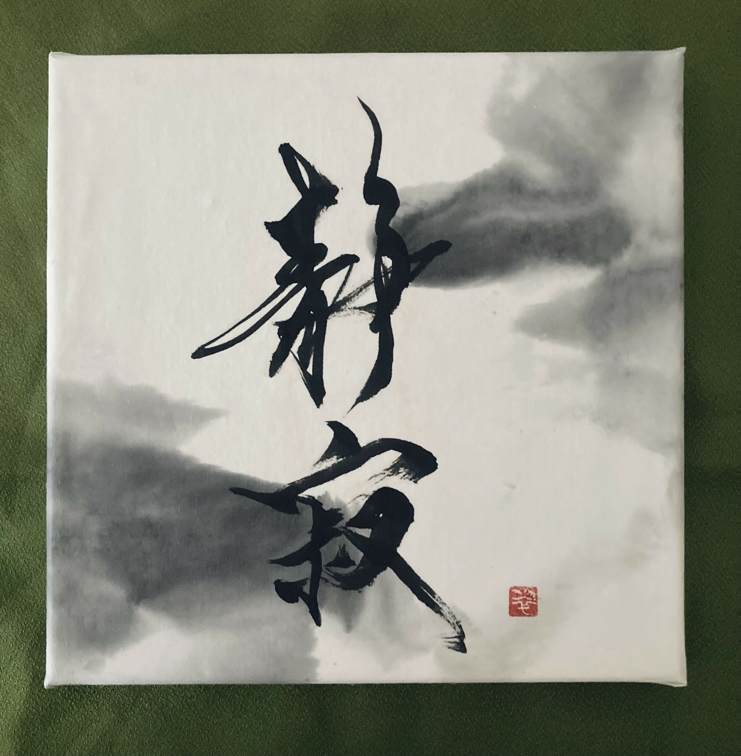 静寂 seijaku, tranquillité – calligraphie sur canva 20×20