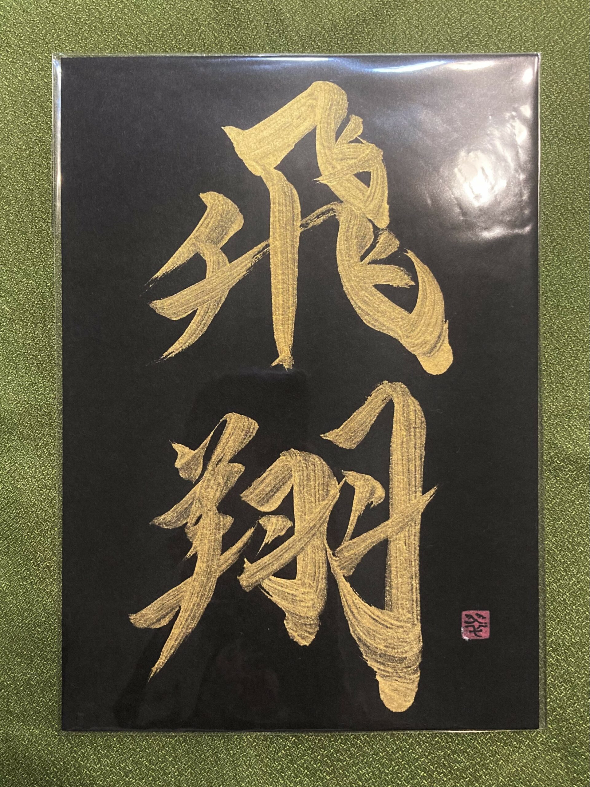 飛翔 hishô, Envol – calligraphie dorée sur fond noir, format A5